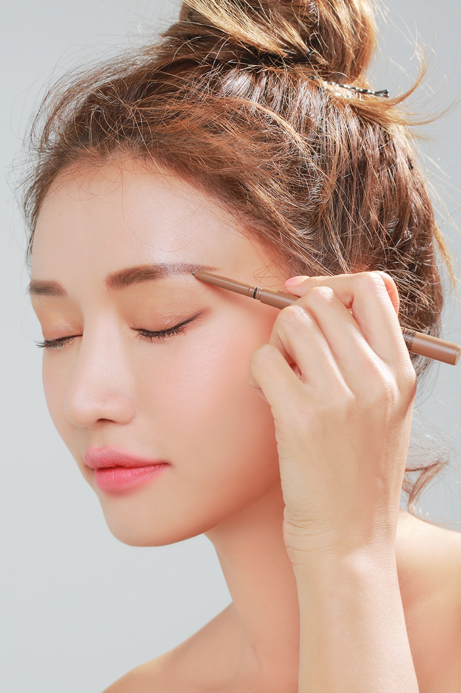 사용방법 : 펜슬로 눈썹 윤곽을 잡은 후 쿠션 팁에 내용물을 적당량 묻혀 그라데이션 하듯 채워 줍니다.