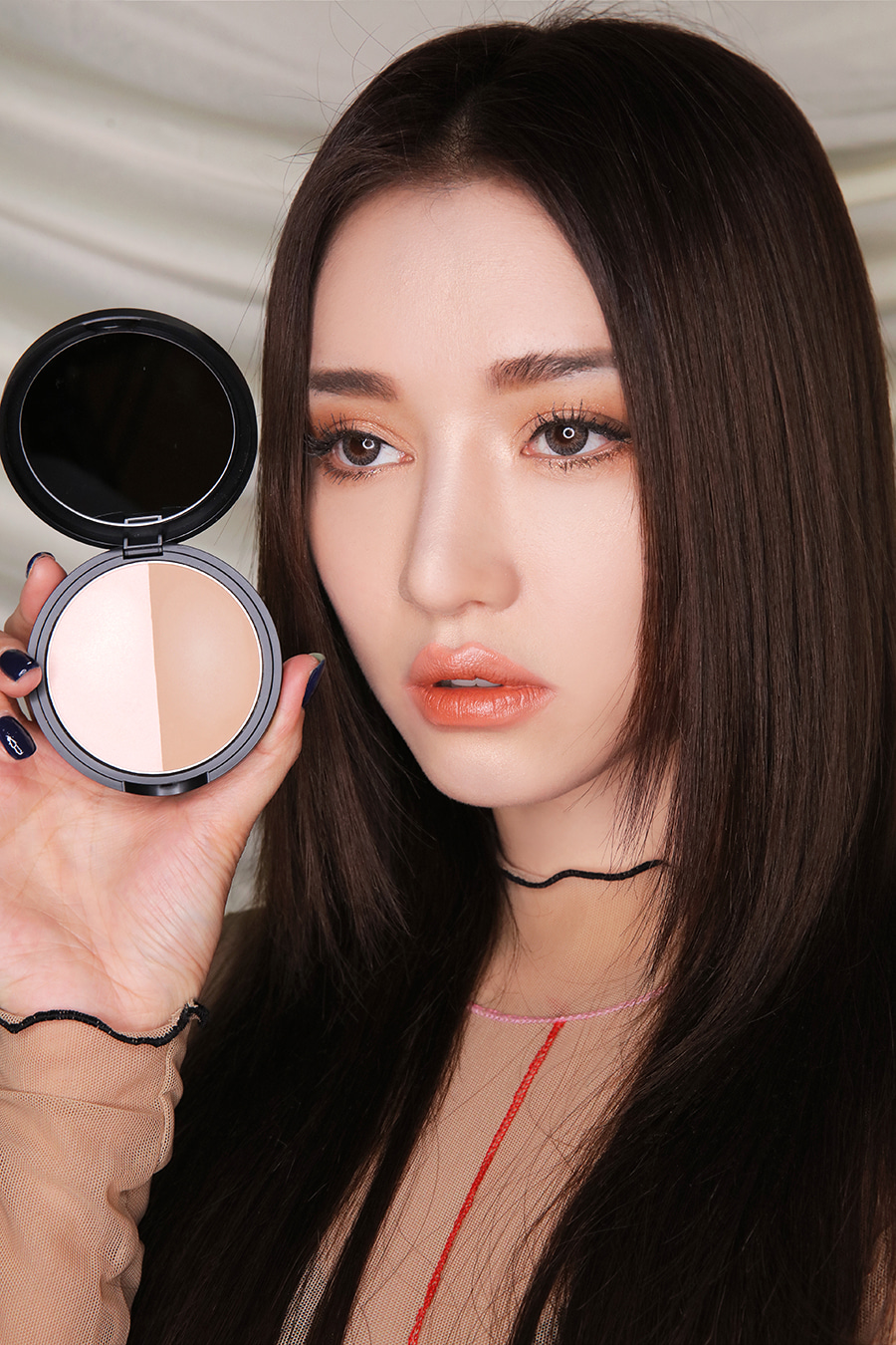 사용방법 : 베이스 메이크업 후, 하이라이터를 이용하여 이마와 콧등을 중심으로 펴 발라주시고, 얼굴선을 따라 섀딩을 자연스럽게 펴 발라 줍니다.