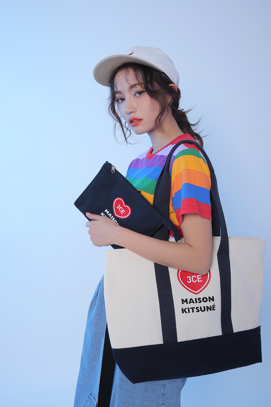 3CE MAISON KITSUNE CANVAS TOTE BAG