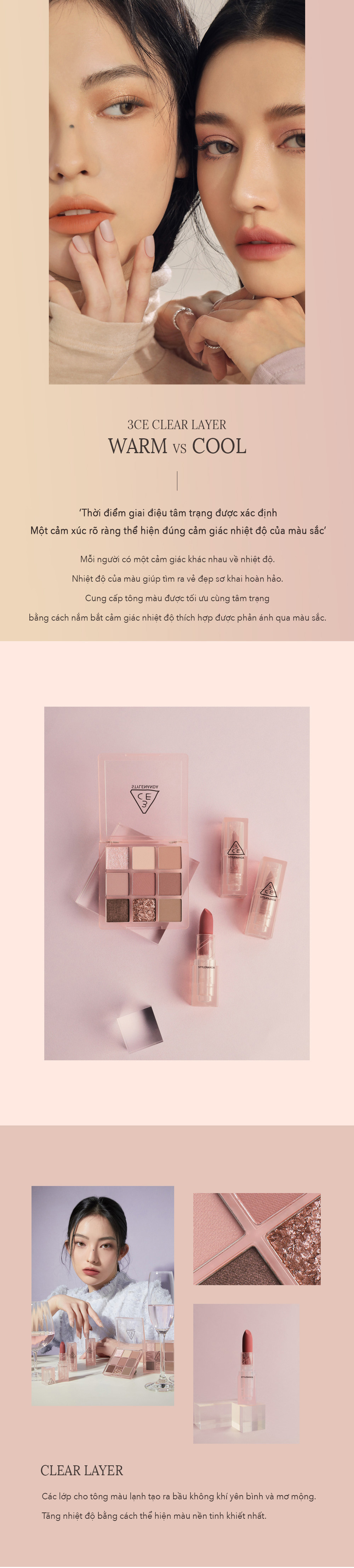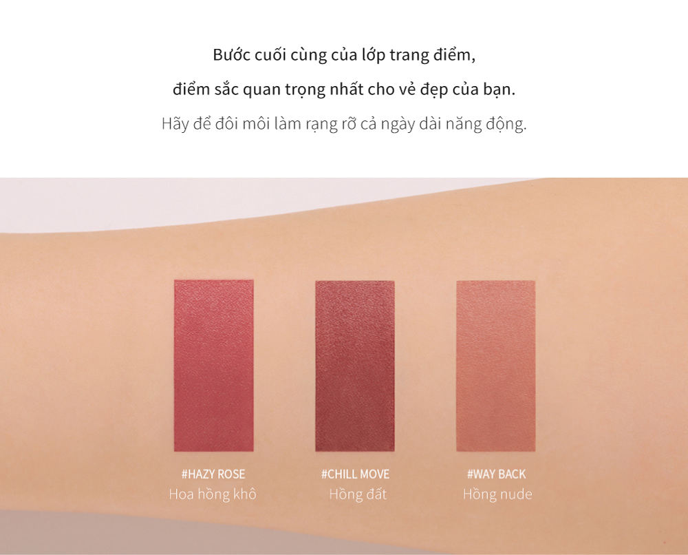 Thuộc bộ sưu tập 3CE CLEAR LAYER WARM AND COOL. Son có sắc tố màu cao và đem lại đôi môi mềm mại dễ chịu.