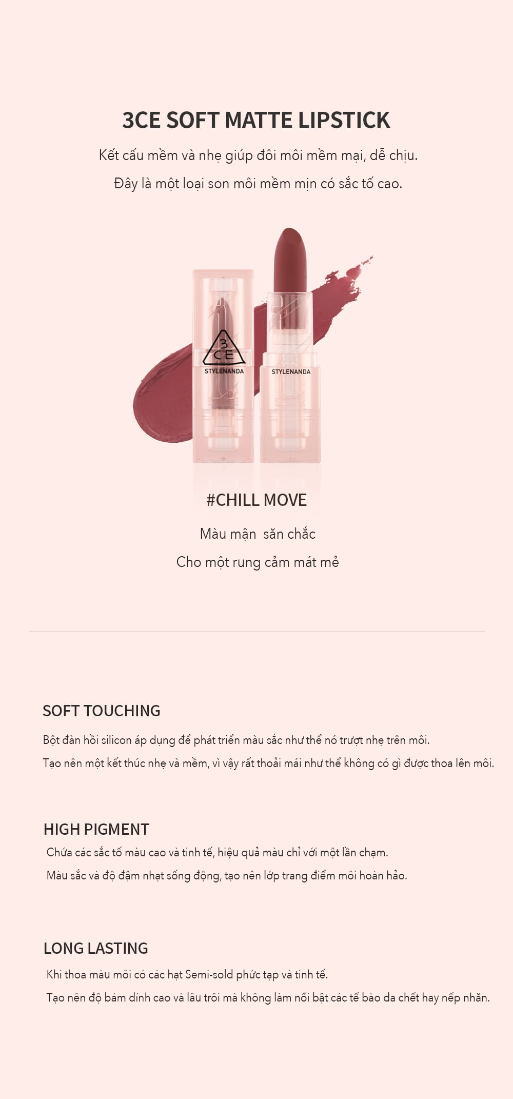 3CE SOFT MATTE LIPSTICK #CHILL MOVE