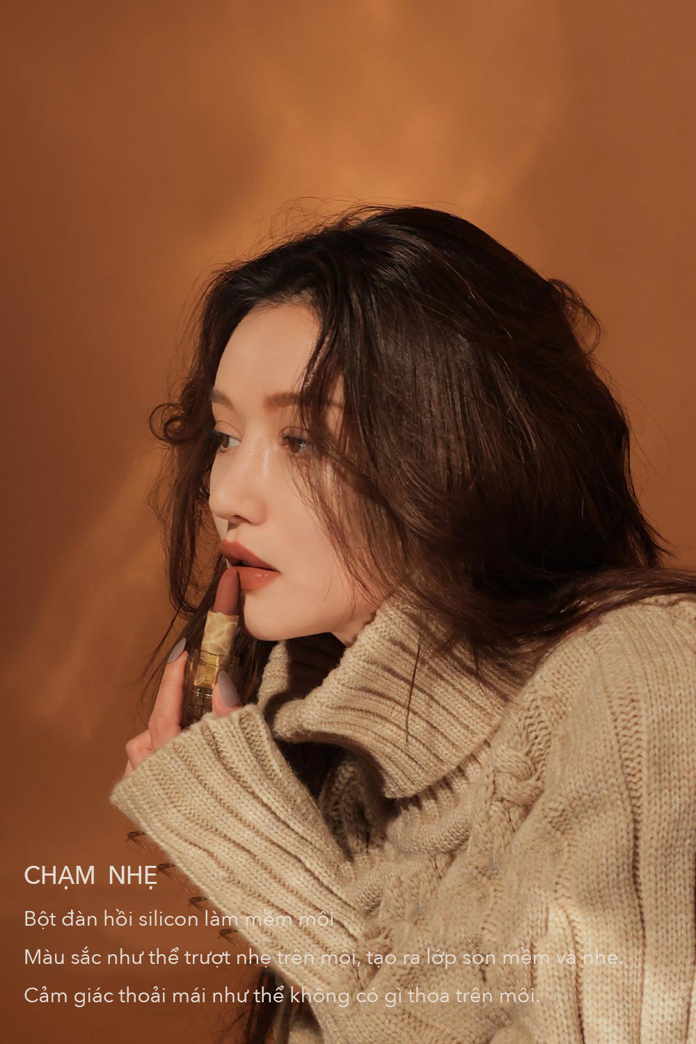 Kết cấu chất liệu tinh tế mềm mại lướt nhẹ trên môi, chỉ với một lần quẹt hiển thị màu rõ ràng.