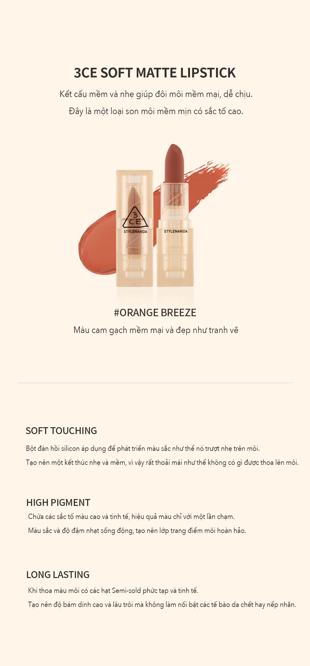 3CE SOFT MATTE LIPSTICK #ORANGE BREEZE