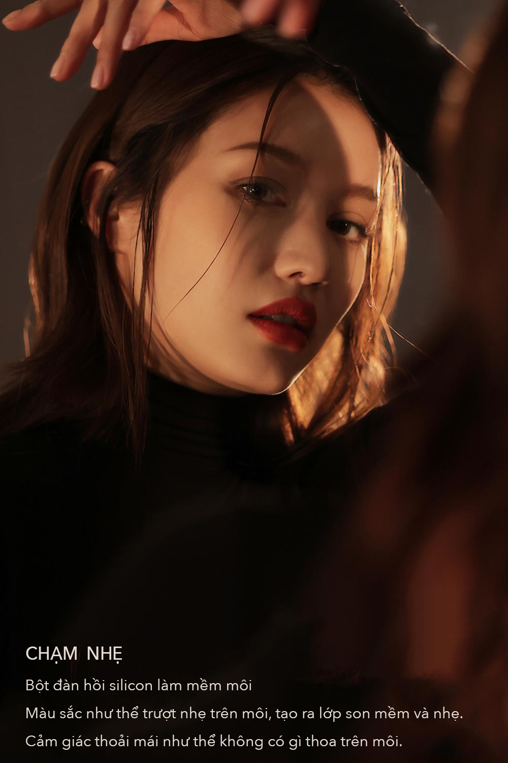 Kết cấu chất liệu tinh tế mềm mại lướt nhẹ trên môi, chỉ với một lần quẹt hiển thị màu rõ ràng.