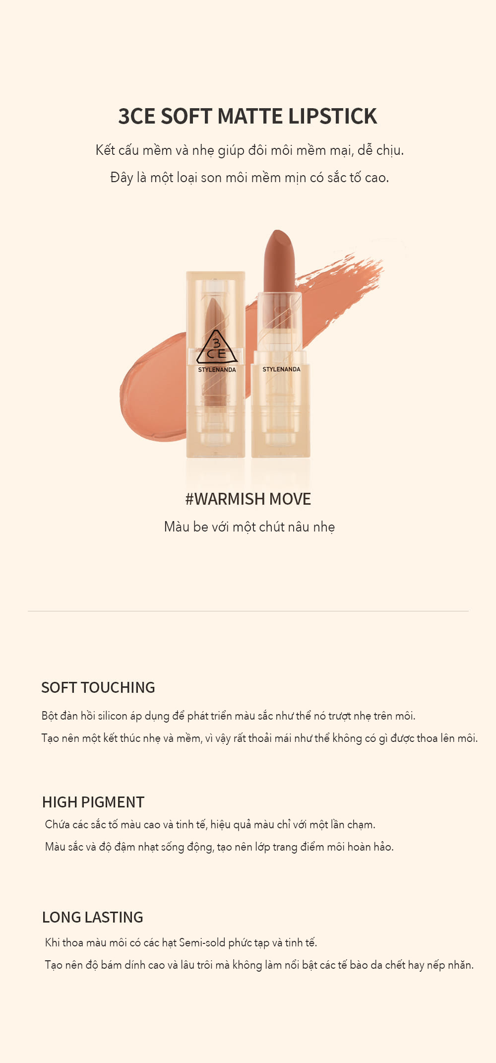 3CE SOFT MATTE LIPSTICK #WARMISH MOVE