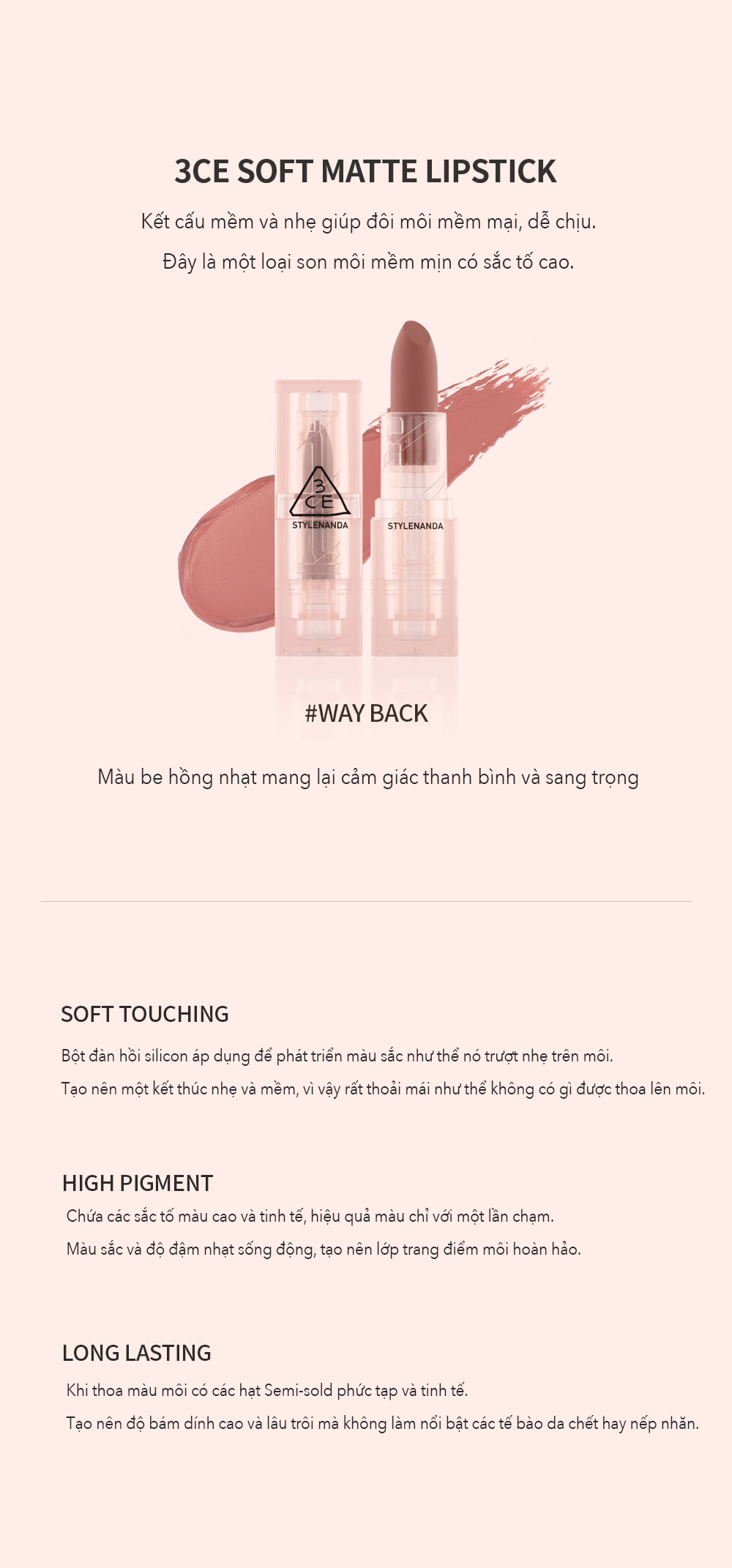 3CE SOFT MATTE LIPSTICK #WAY BACK