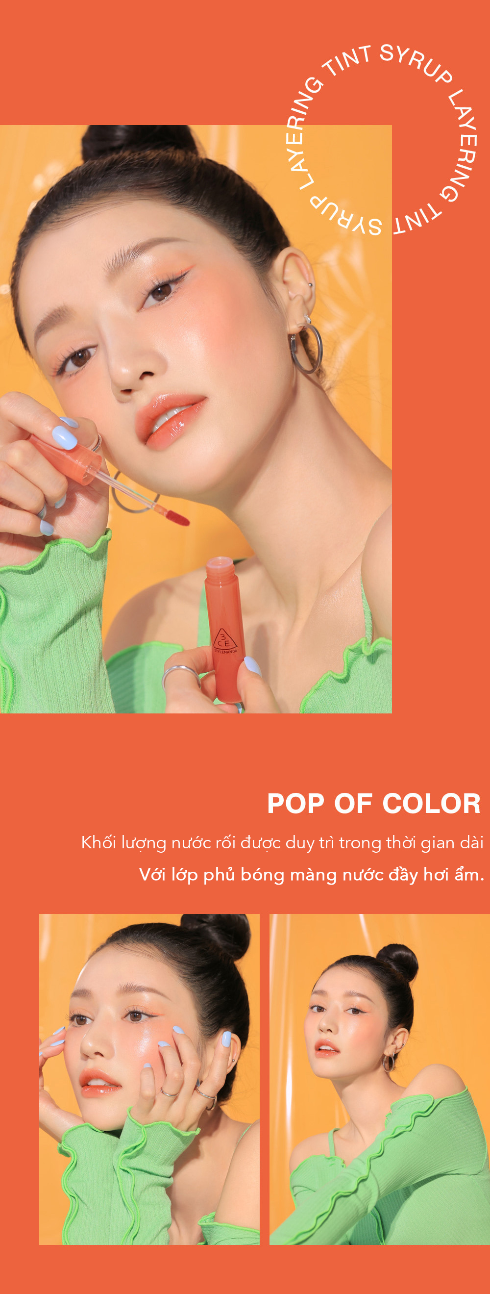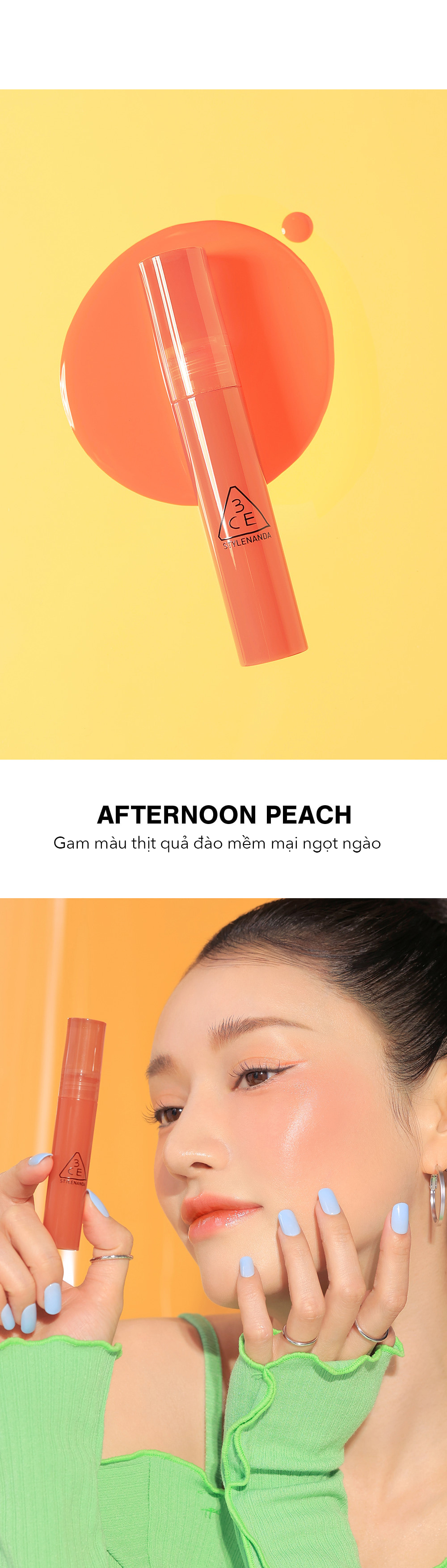 Son 3ce, son tint, 3cevietnam, 3ce syrup layering tint, afternoon peach, trang điểm, son bóng, son dưỡng,
