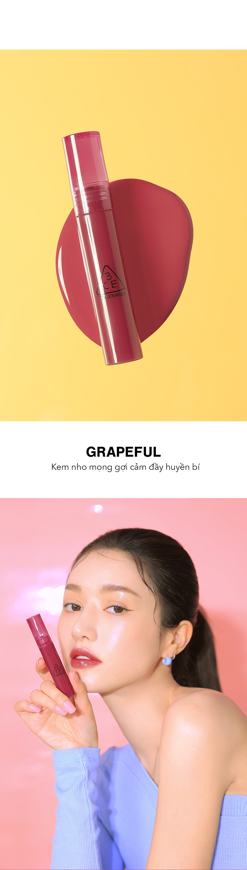 Son 3ce, son tint, 3cevietnam, 3ce syrup layering tint, grapeful, trang điểm, son bóng, son dưỡng, son mới, son đẹp, màu son đẹp, son gợi cảm,