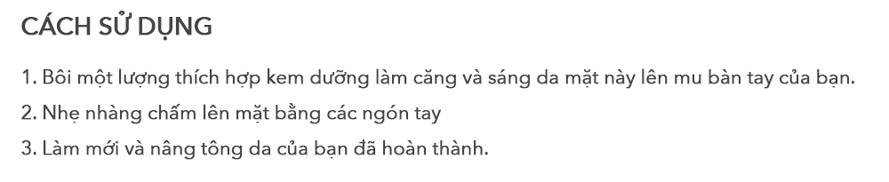How to Use : Gently apply a small amount at the end of your skincare routine. Use on the areas you wish to brighten such as neck, arms, or legs.