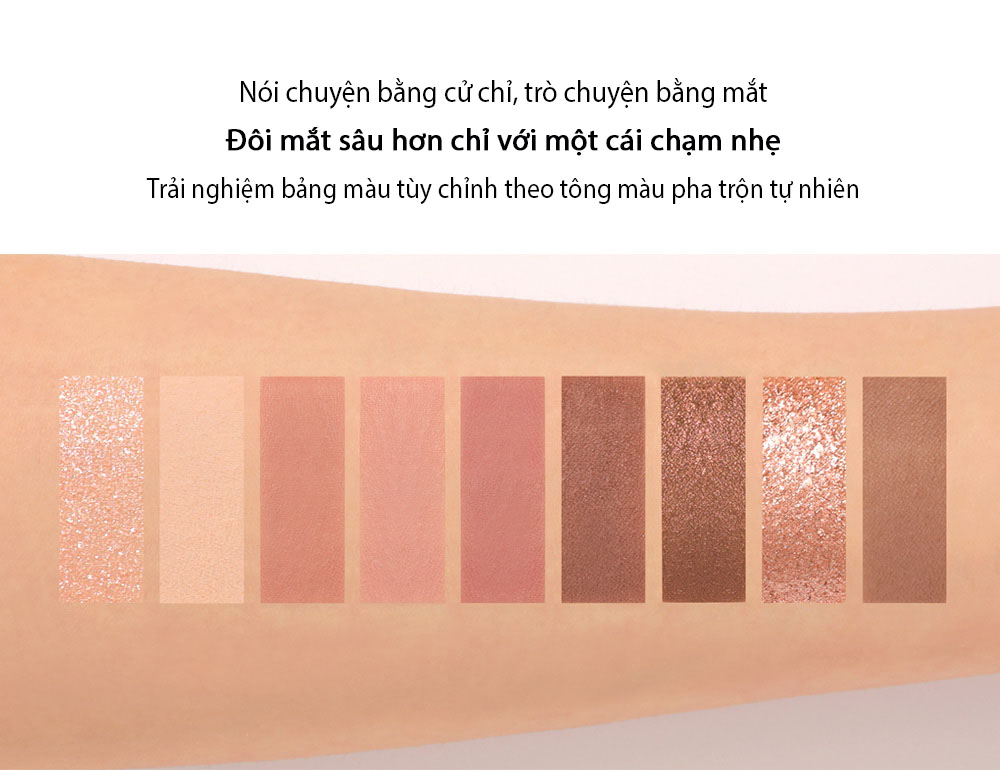 Thuộc bộ sưu tập 3CE CLEAR LAYER WARM AND COOL, bảng màu mắt với 9 ô màu tinh tế.